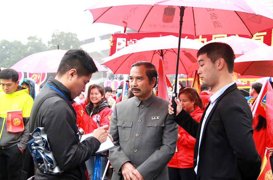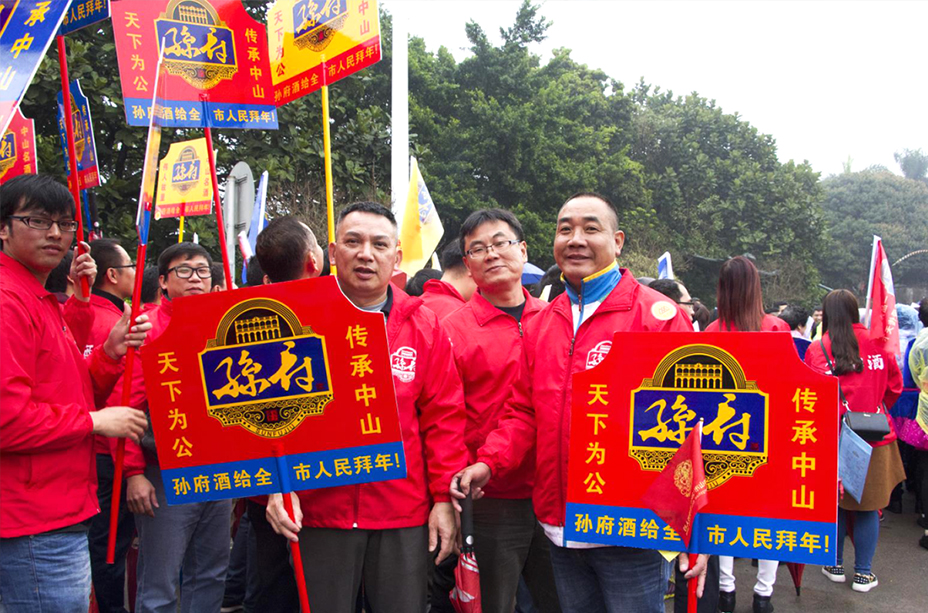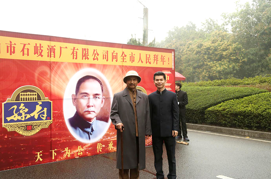 走在游行方阵前列的是我们石岐酒厂的方阵,为首一人身穿深灰色中山套装,胸前别着蔚蓝色的“博爱”扣针。灰黑色的胡须、梳理整齐的油头发型……容貌与当年国父孙中山别无二致。这位“国父”在主席台前停下,双手打开一张书法字帖,帖上工整地写着“天下为公”四字。观看市民啧啧称奇,纷纷上前拍照留念。