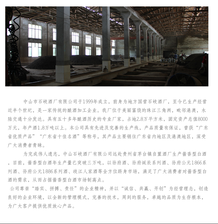 产品名称:岐江人家 净含量:500ml 酒精度:38%vol 香型:浓酱兼香型白酒 配料:水、优质高粱、优质小麦 储存条件:常温避晒 产地:贵州省茅台镇 厂家:中山市石岐酒厂有限公司 质量等级:优级